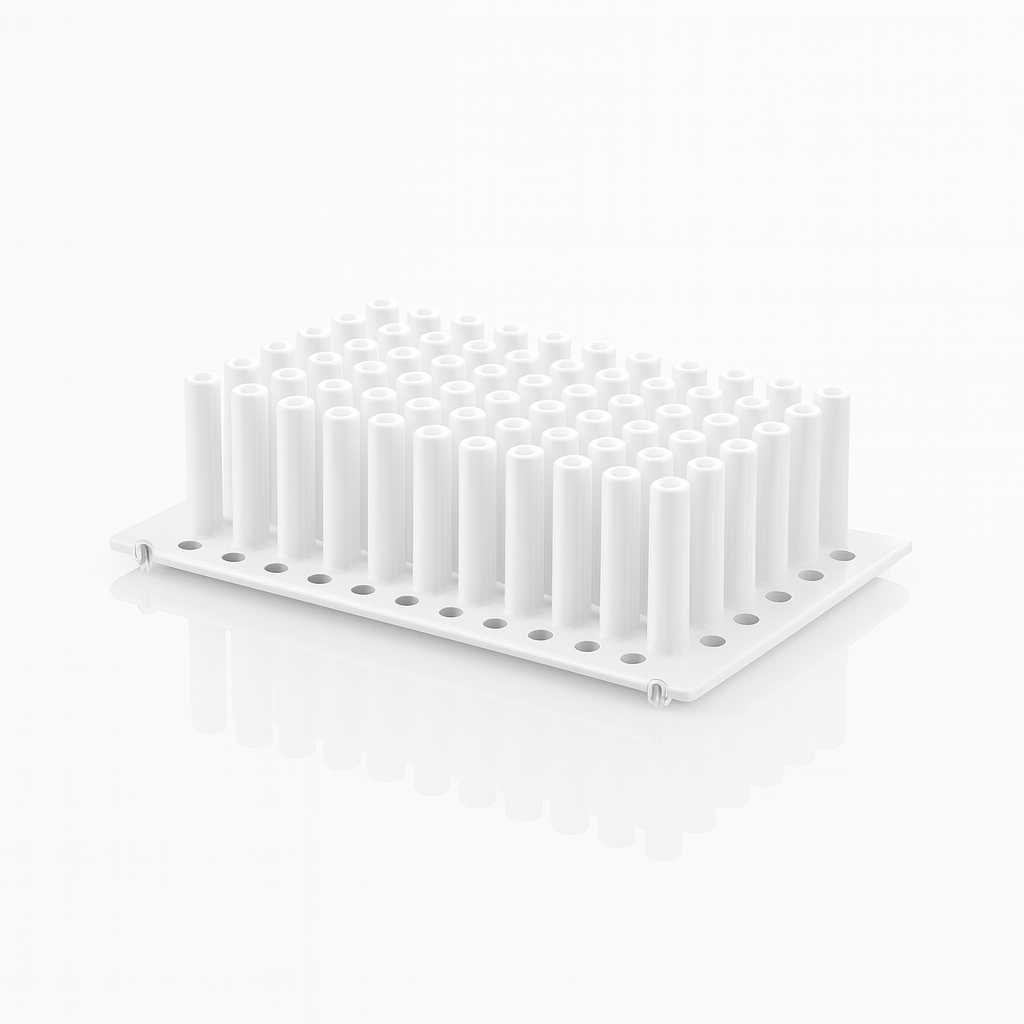 The 96 Tip Combs are sterile, high-quality plastic accessories designed for use with deep well plates and magnetic separation systems in nucleic acid purification and automated liquid handling workflows. These combs protect the magnetic rods from contamination while enabling efficient bead mixing and separation. Manufactured under strict quality control, each comb is sterile and DNase/RNase-free, making them ideal for molecular biology and clinical diagnostic applications.