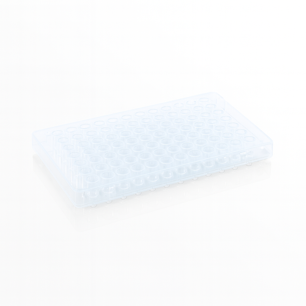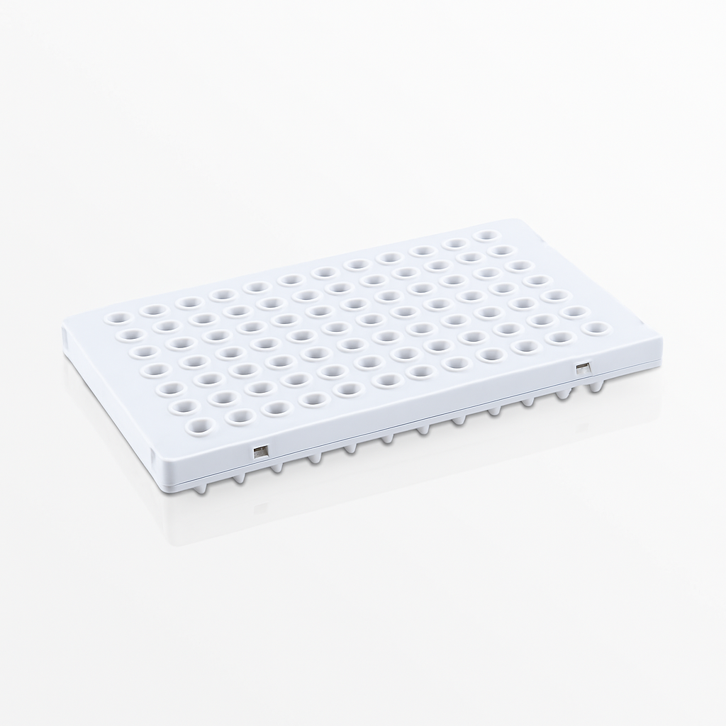 The 96-Well Half-Skirted PCR Plate is designed for high-performance PCR and qPCR applications. Available in both white and clear formats, this plate offers excellent thermal conductivity and optical clarity. The half-skirted design provides enhanced stability during automated handling and compatibility with most PCR instruments. Made from medical-grade polypropylene, each well accommodates either 0.1mL or 0.2mL reaction volumes with low evaporation and consistent heat transfer.