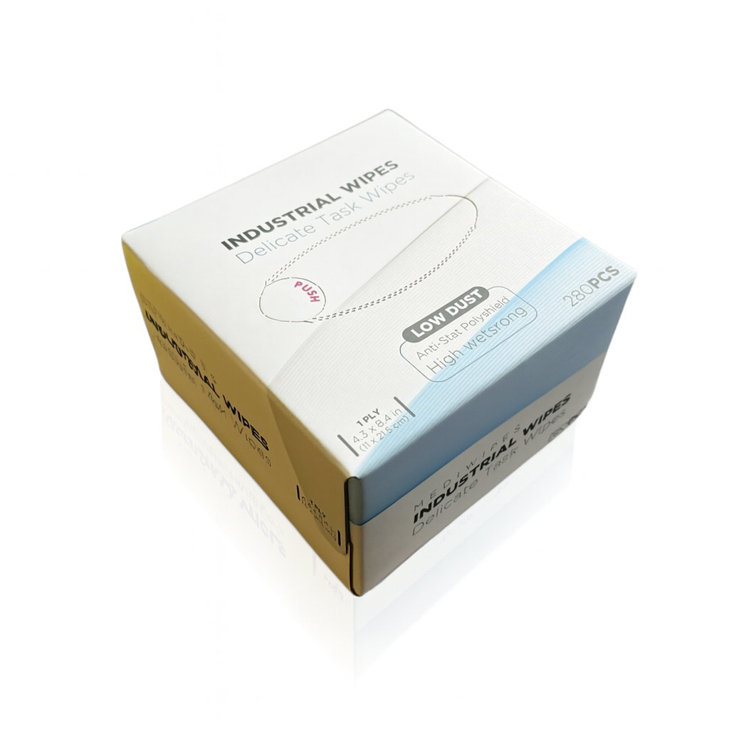 Delicate Task Wipes are specially designed for cleaning sensitive surfaces without scratching or leaving lint behind. Ideal for laboratory instruments, optical equipment, electronics, and medical devices, these wipes offer exceptional absorbency and strength. Made from high-quality nonwoven material, they provide a safe and effective solution for critical cleaning tasks in sterile and controlled environments.