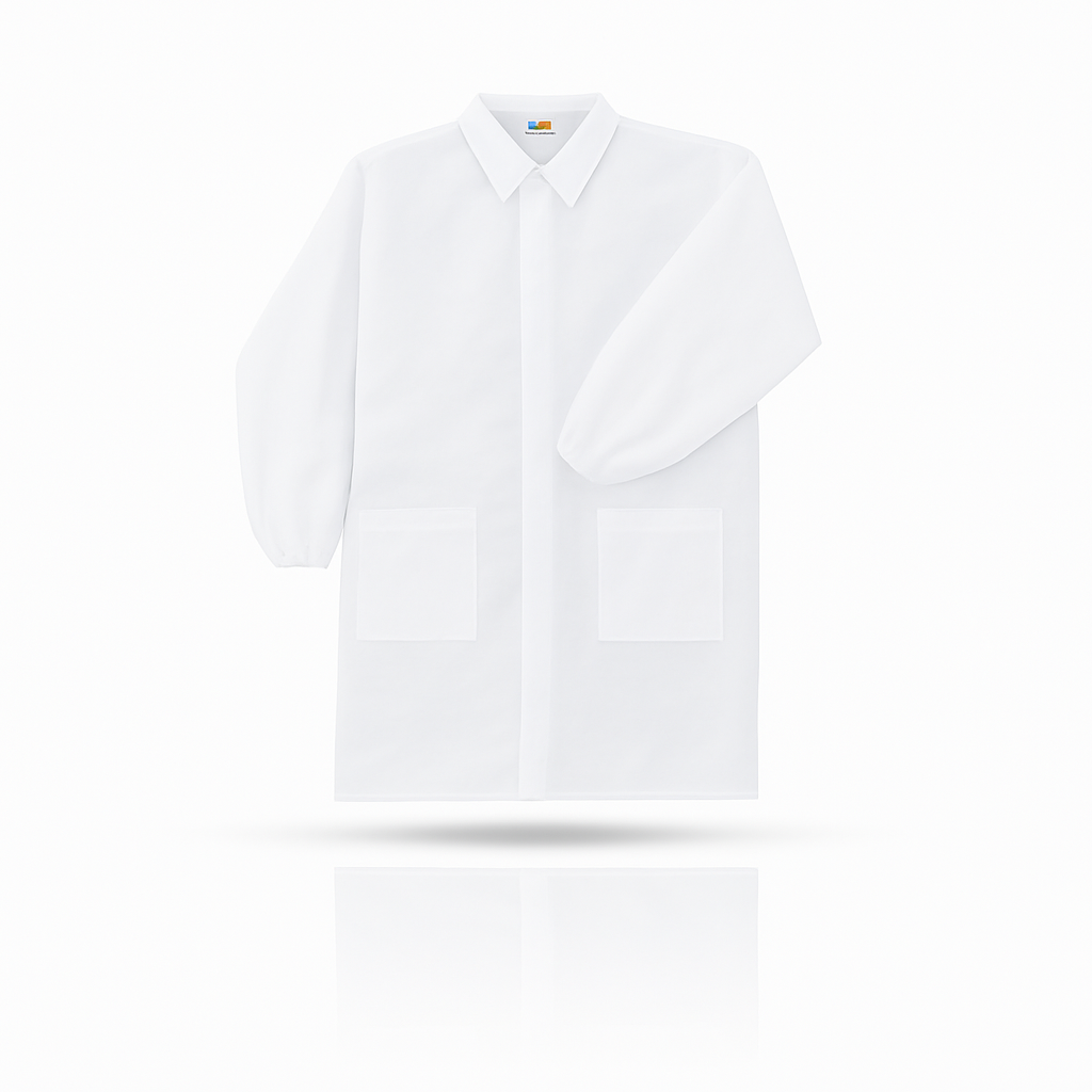 Stay protected and professional with our Disposable White Lab Coat featuring 3 functional pockets. Designed for comfort and convenience, this lightweight coat provides barrier protection in medical, laboratory, pharmaceutical, and cleanroom environments. Available in sizes S, M, L, XL, and XXL to ensure a proper fit for all staff members.