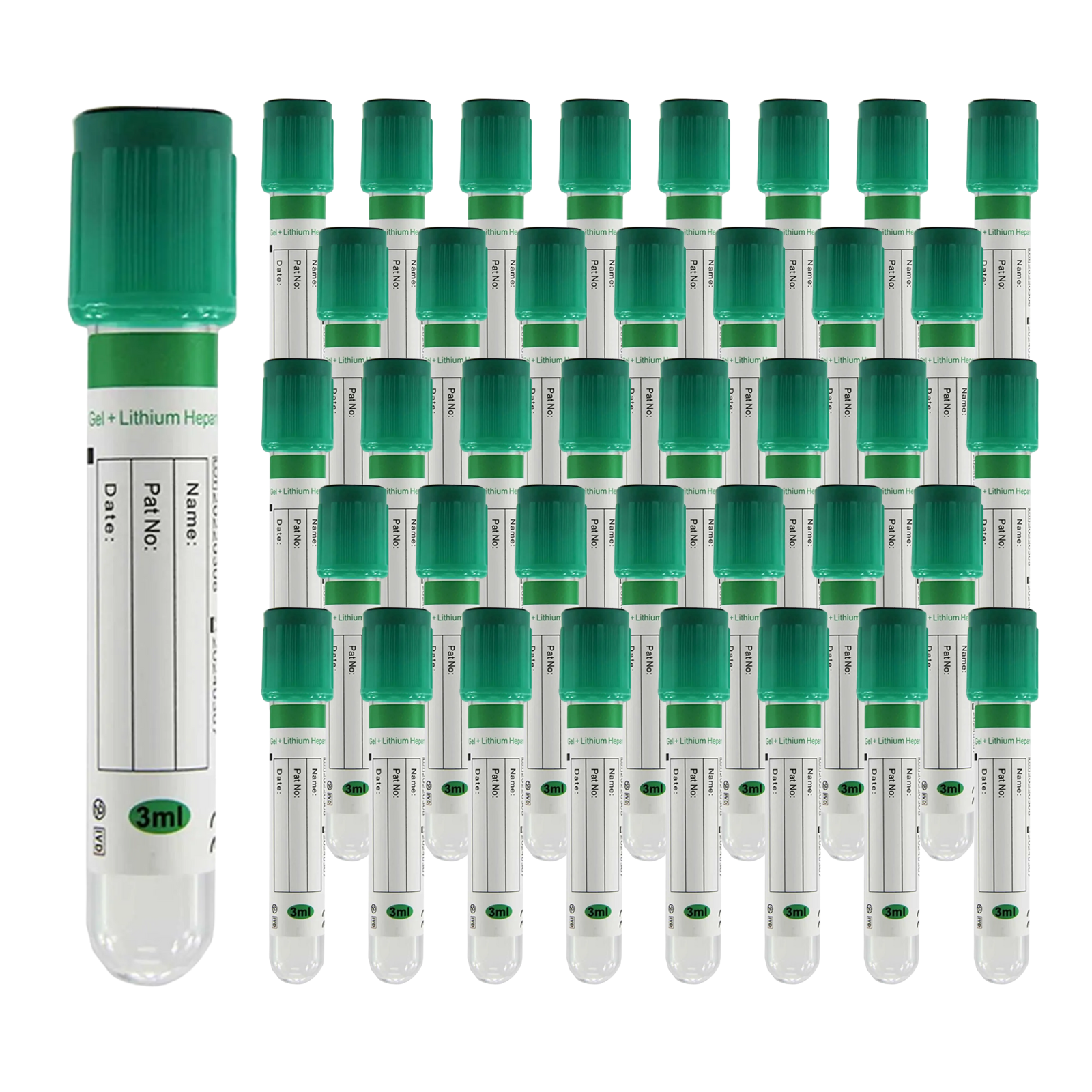 This 3 mL Vacuum Blood Collection Tube contains Lithium Heparin and a gel separator, specially formulated for plasma separation and chemistry tests. The green top indicates the presence of anticoagulant for immediate plasma processing, while the gel barrier forms a stable layer between plasma and blood cells after centrifugation. Ideal for clinical chemistry assays, toxicology, and electrolyte testing.