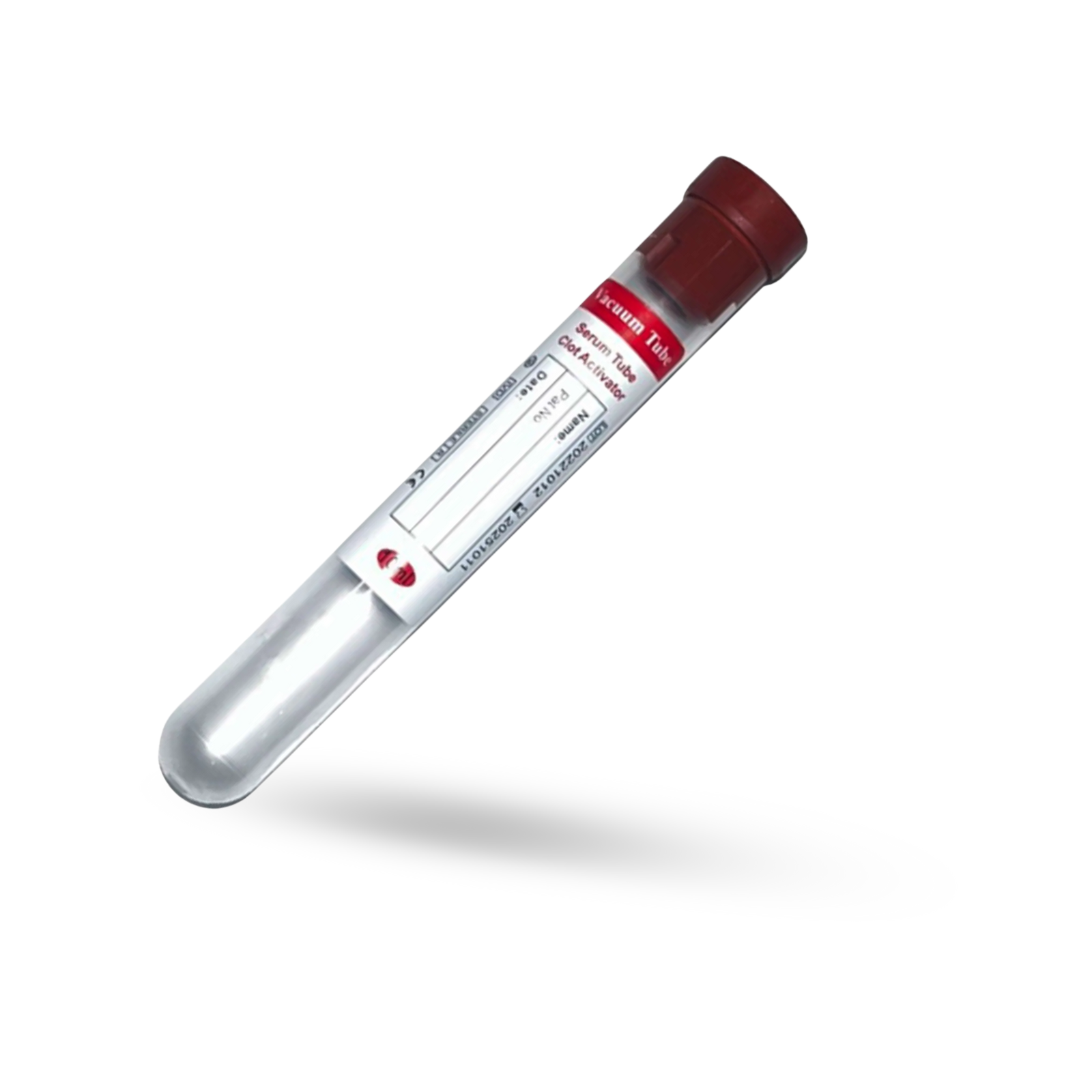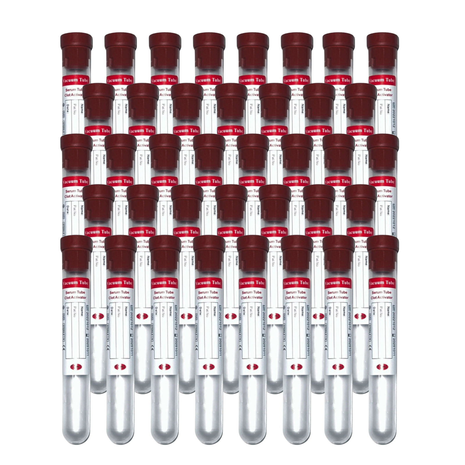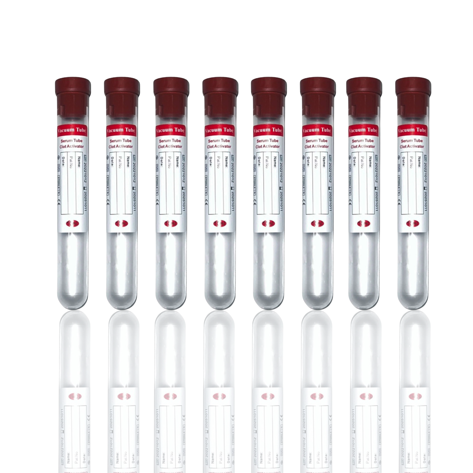This 10mL Vacuum Blood Collection Tube with a rubber red top is designed for serum testing in clinical laboratories. Coated with a clot activator, it ensures fast and complete clotting for optimal serum separation. The rubber stopper allows for secure needle insertion, and the tube is vacuum-sealed for precise draw volume. Ideal for routine blood collection in hospitals, clinics, and diagnostic centers.