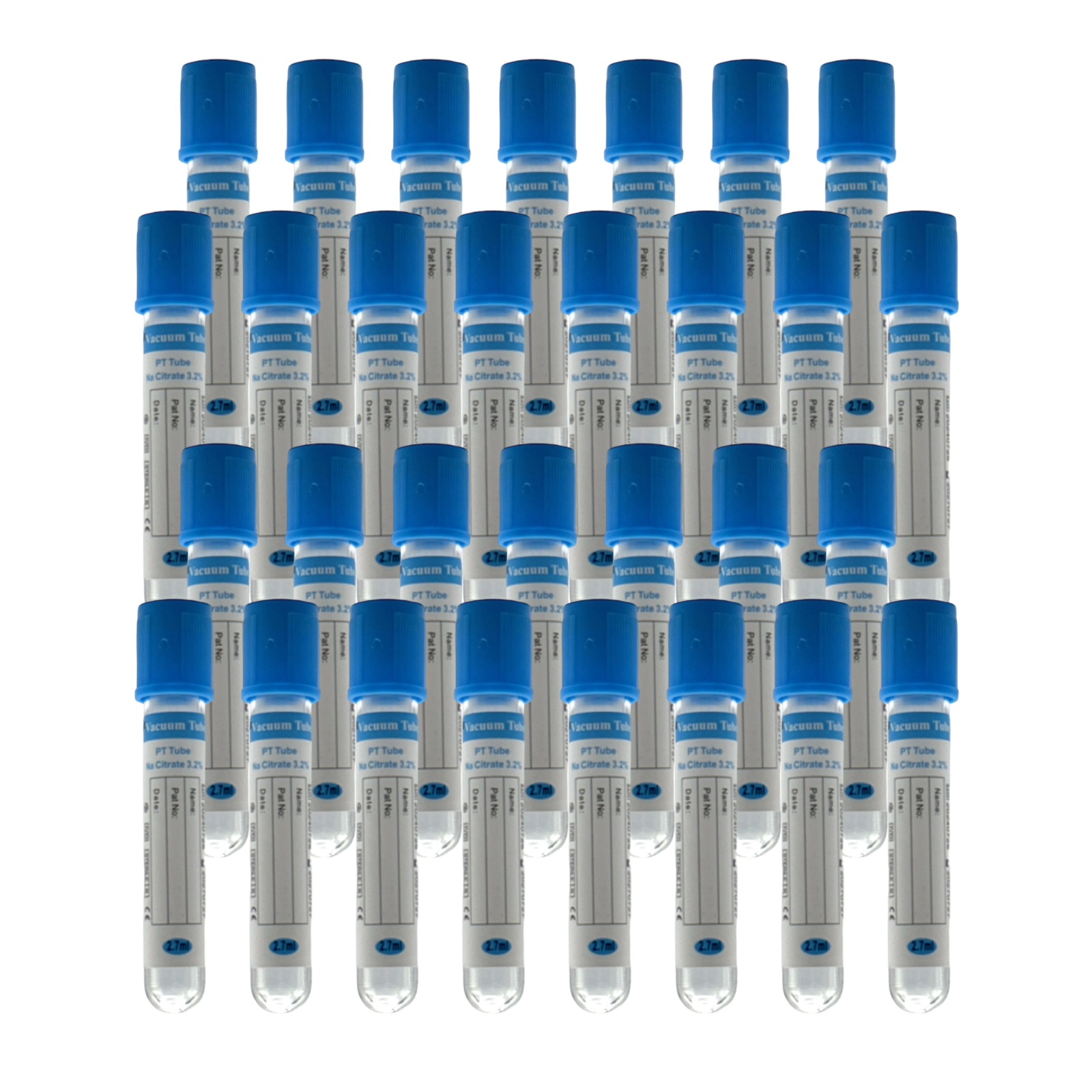 This Vacuum Blood Collection Tube contains a 3.2% Sodium Citrate additive and is designed for accurate coagulation testing. With a 2.7 mL draw volume and a light blue cap, it ensures the proper blood-to-additive ratio for reliable results. The vacuum-sealed tube is made of medical-grade plastic and is compatible with standard blood collection systems.
